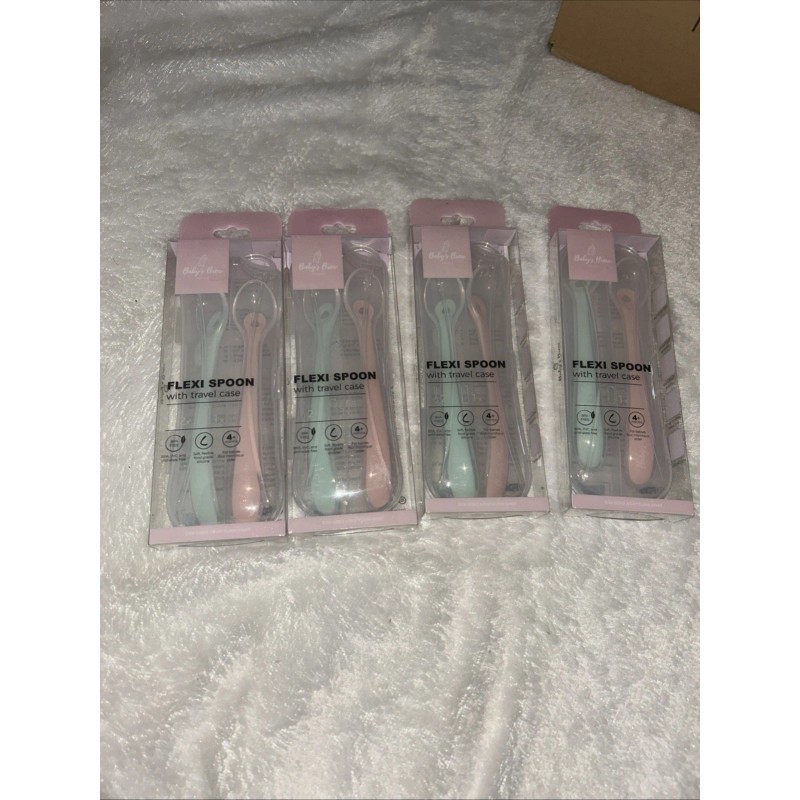BABY BREW FOUR (4) Sets Of Two Silicon Baby Spoons W/ Hard Case New Flexi Spoon