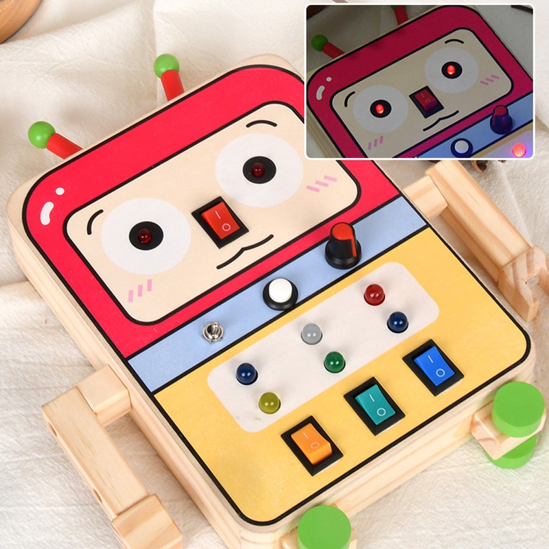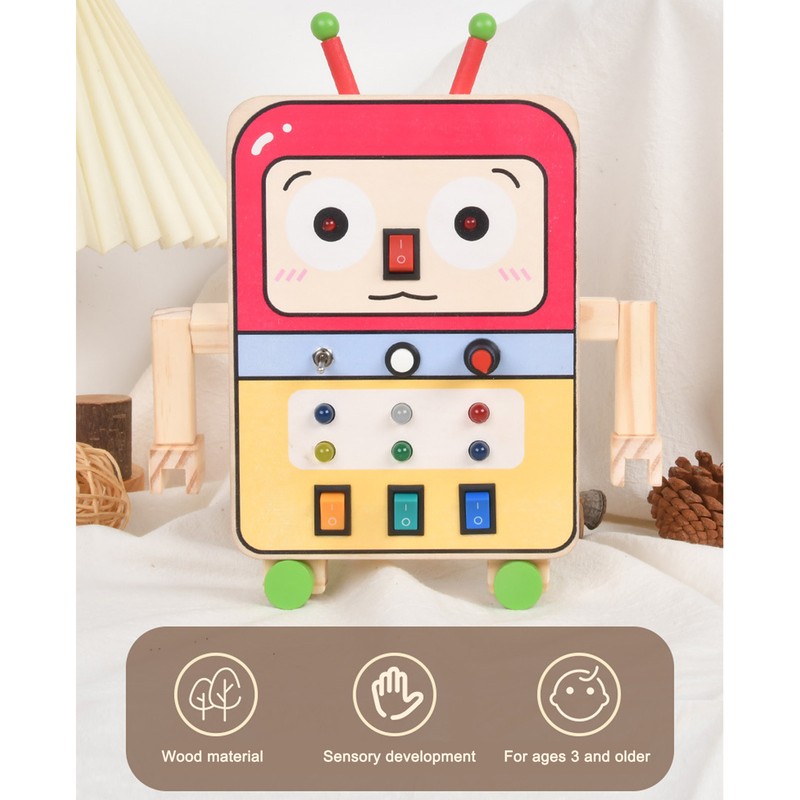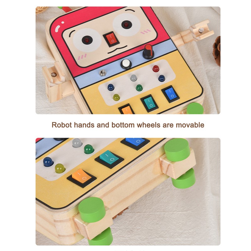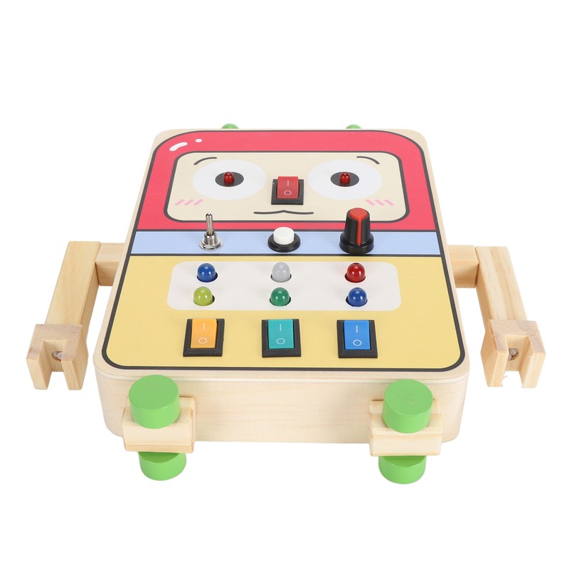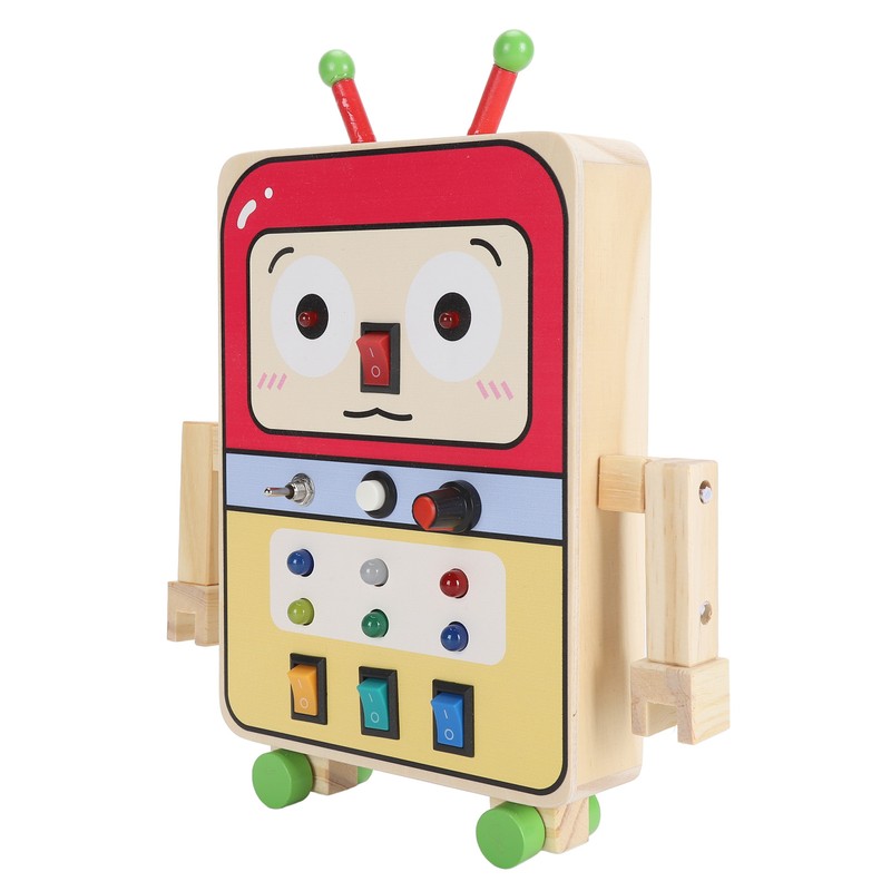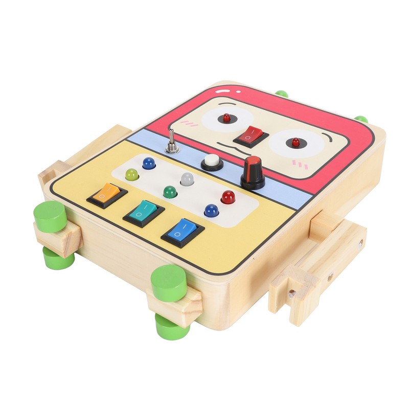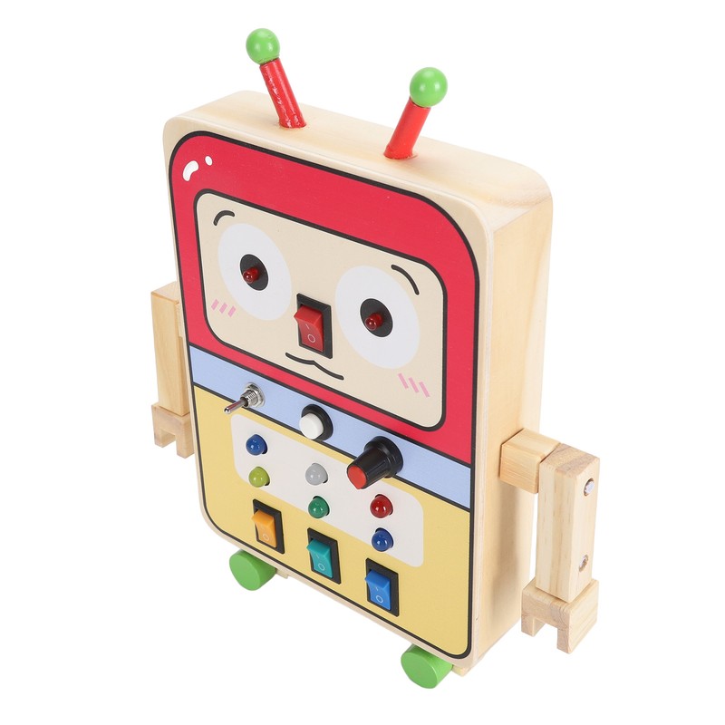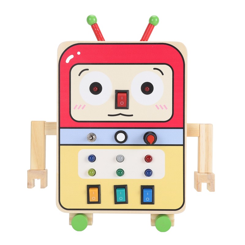 1、Improve Imagination: Wooden light up switch toy adopted robot shaped design, stimulates children creativity and imagination, effectively fostering a love for building and creating. 2、Traffic Light Simulation: Wooden button light up toy adopted red and green light switch, mimics traffic signals, aiding in teaching children about traffic rules and safety awareness. 3、Educational Tool: Wooden light switch toy enhances children cognitive abilities, also improve logic thinking, and problem solving skills through interactive play. 4、Wide Application: Wooden sensory board switch toy is ideal for kindergarten and home education, promoting early childhood development and learning through daily playing. 5、Safe and Durable: Kids light up board toy made of pine wood material, firm and sturdy, with smoothing surfaces to prevent scratch, ensuring a healthy and safe play environment for children.