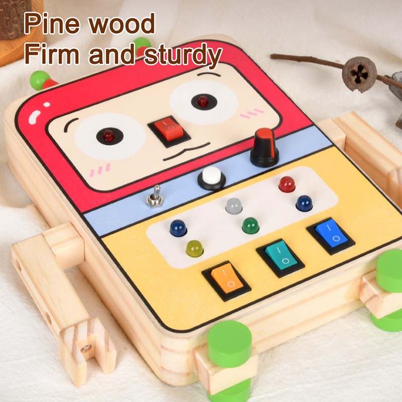 Baby Button Light Up Toy Simulation Early Educational Wooden Sensory Toy with LED Light Switches