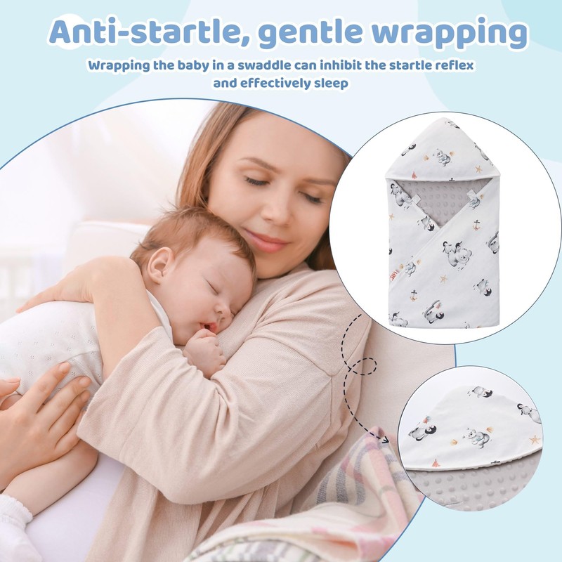 - 【TRIANG WINDPROOF HOOD】:Windproof Cap Design,Effectively protect your baby's head to prevent them from catching a cold while going out.And Swaddle your little one into swaddling towel before bedtime and provide a cosy and safe sleeping environment, which can inhibit the startle reflex and effectively settle down for a peaceful sleep, suitable for babies from 0-12 months old.