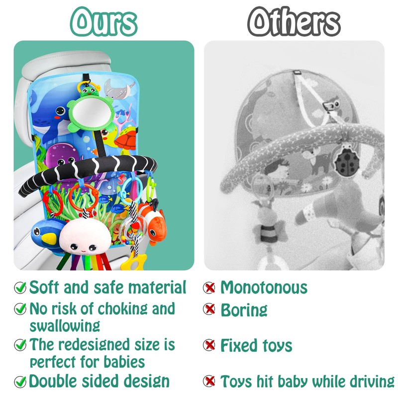 Baby Car Seat Ocean Animals Toys - Kick and Play Double Sided Infant Car Seat Toys with Plush Toys, Mirror, Teether for Baby Travel Activities, Christmas Birthday Gifts Newborn Infant Toy