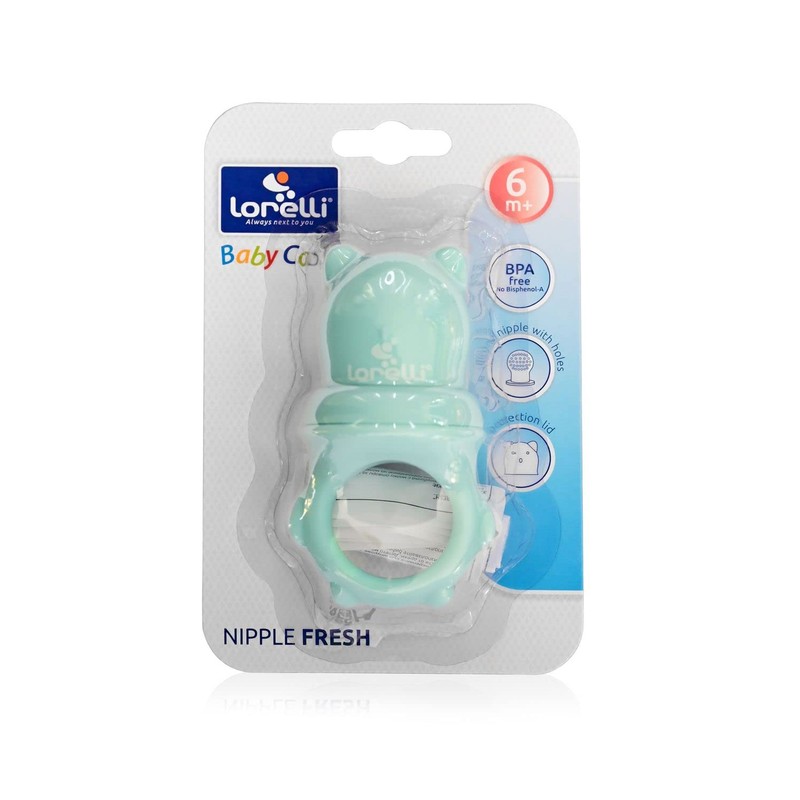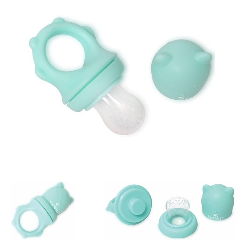 - Fruit teat and teether in one, in turquoise, suitable for children aged 6 months and over