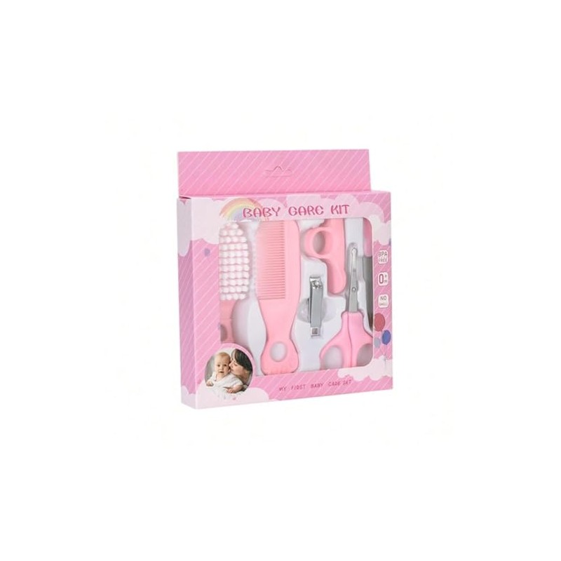 Baby Care Kit, 6-Piece Grooming Set with Comb, Brush, Scissors and Nail Tools (Pink)