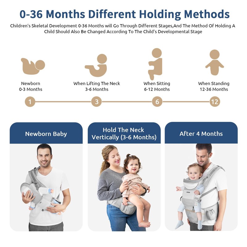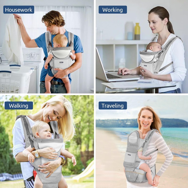 • 【Experience Happy Traveling】 baby carrier is a great gift for new parents. It has multiple features of comfort, convenience, and multi-functionality. There are a variety of positions to meet baby's needs. In addition to enjoying hands-free and easy travel, the two sides of the waist and under the waist bench are also set up with a large enough storage space to conveniently store bottles, cell phones, keys, diapers, and other items. So you don't need to travel with a big bag!!
