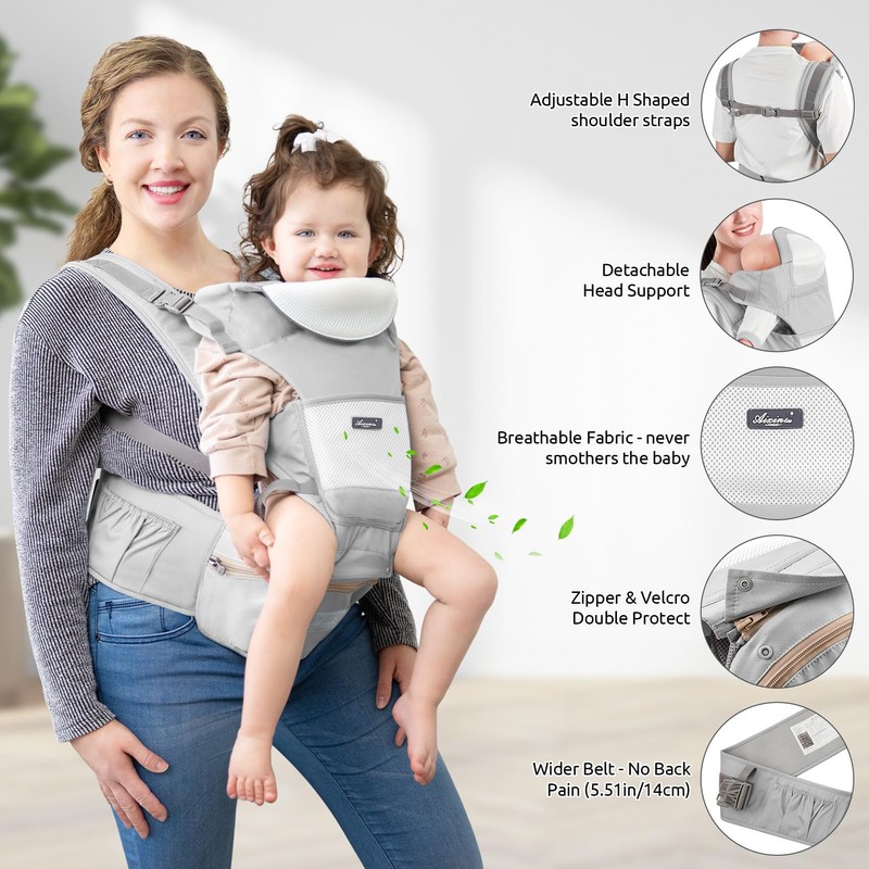 • 【Designed for Baby's Healthy Growth】We focus on the healthy development of baby's hips, spine, and leg joints. For this reason we have adopted a natural ergonomic "M" shape design to keep baby's legs naturally drooping, thus making baby more relaxed and comfortable. Unlike other products, we have also added an extra belt around the baby's waist, making it more suitable for babies of different months and providing an extra layer of safety!
