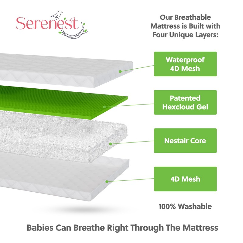 • NestAir Core: Serenest’s noodle core structure allows maximum breathability to prevent suffocation risks.