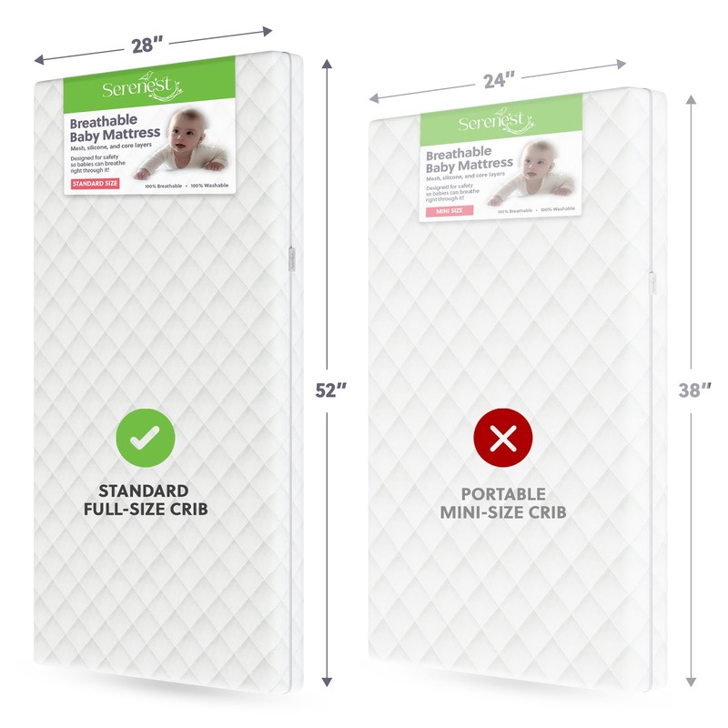 Our Standard Crib Mattress measures 52.76 x 28.74 x 4.72 in, delivering tailored support and breathability for toddler beds and standard cribs as your little one grows.