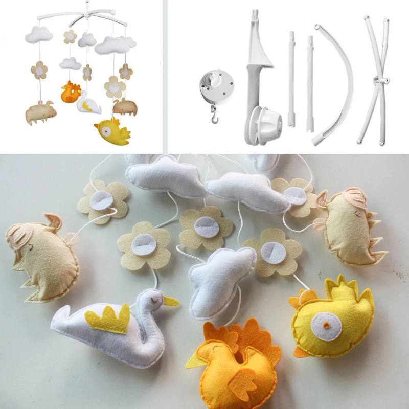 Each package contains a Baby Crib Mobile Bed Bell Holder Arm Bracket and a Wind-up Music Box and toys. This handmade baby crib mobile plays light music to help your baby easily fall asleep. Easy operation and convenient to use, it will rotate while playing music. Keep baby calm and happy, with this mesmerizing mobile. It is an essential product for baby and nursery. The toys are made from nonwoven fabric. Please note: Can be customized, please contact us about the colors you like, otherwise we will ship the item in original color to you. Each mobile plays Only One soothing pure and light song, it is Brahms Lullaby or Mozart Lullaby(random).