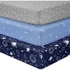 Baby Crib Sheets for Boys Girls, Fitted Crib Sheet Neutral 3 Pack for Standard Crib and Toddler Mattress, Breathable Soft Microfiber Baby Sheet 28x52x8in Blue Gray Planet