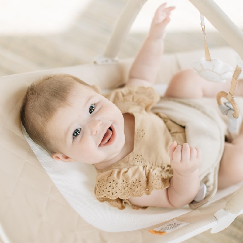 - MAXIMUM SAFETY: The Heirloom Aspen baby bouncer seat is JPMA certified and fashioned with a 3-point harness to keep your baby secure and in place. Recommended age range is 0-6 months or up to 20lbs.