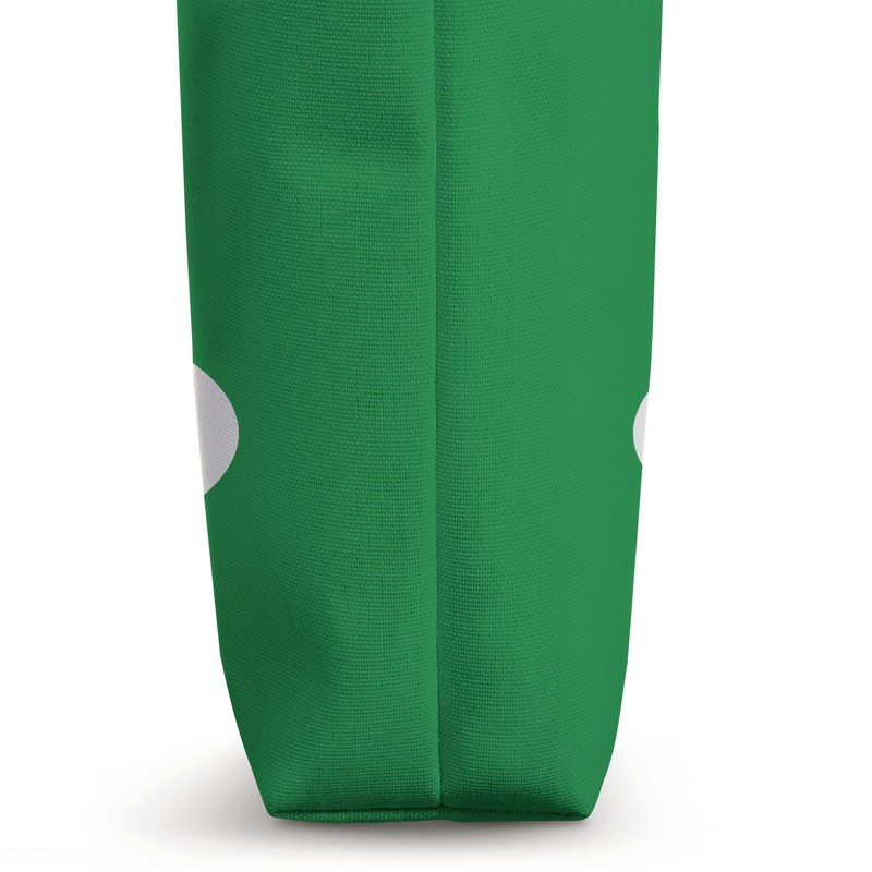 - 16” x 16” bag with two 14” long and 1” wide black cotton webbing strap handles.