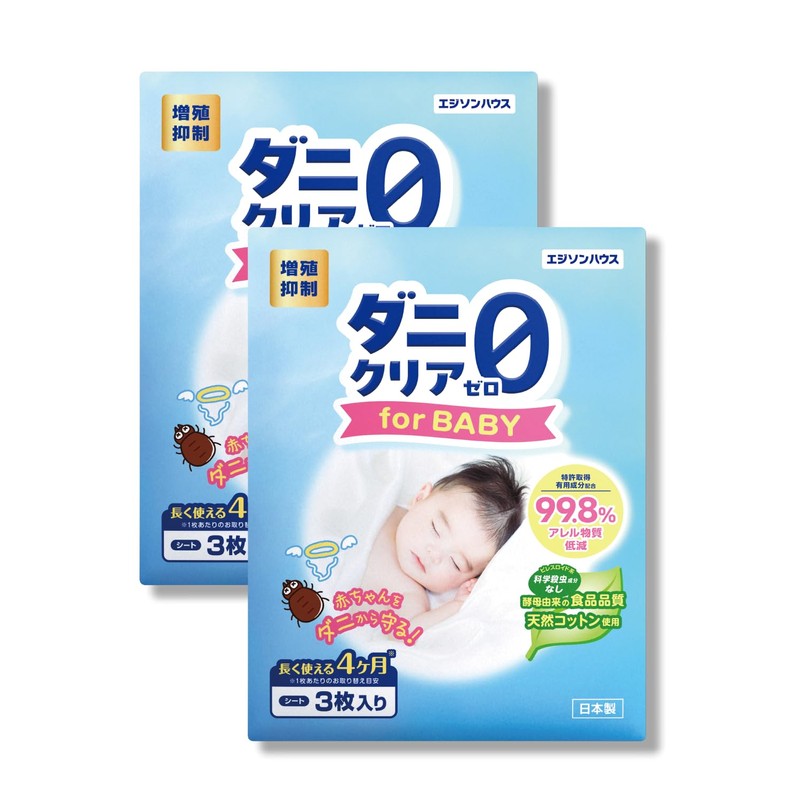 BABY Does Not Increase Dust Mites, 4 Months, Set of 3, 2 Sets (Attracting x Inhibits Growth 99%, Allergen Reduction 99%), Dust Mite Removal Sheet, Clear Zero, Baby, Pet, Edison House