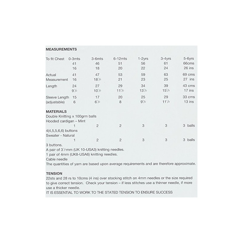 - The pattern gives you measurements to create the garments for babies from Birth - 6 years to fit a chest size of 16" - 26" (41cm - 66cm).