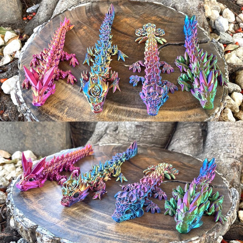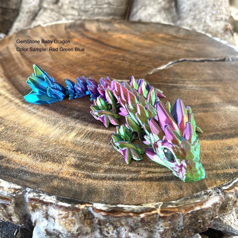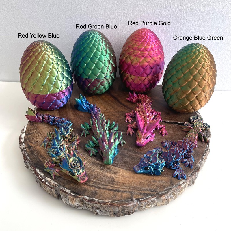 Baby Dragons with Optional Dragon Egg - Articulated Baby Crystal Dragon, Rose Dragon, Orchid Dragon, Gemstone Dragon, Fidget Toy for Autism ADHD BD-Set-001 (Egg + Crystal Dragon, Red Green Blue)