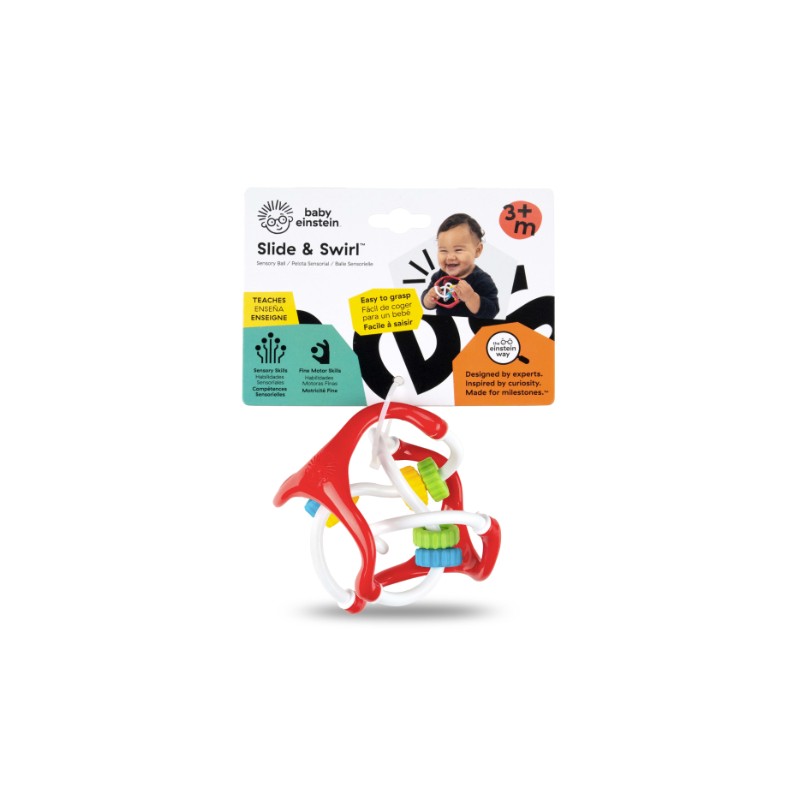 The Baby Einstein Slide & Swirl Sensory Ball is an easy to grip ball and bead chaser to engage baby’s senses and support fine motor skill development