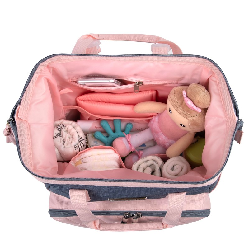 - INCLUDES 6-PLY MATCHING CHANGING PAD: Comes with an easy, 6-ply wipe-clean changing mat to match the interior lining of the bag, so baby has his or her own portable changing station for safe, clean and dry changes anywhere.