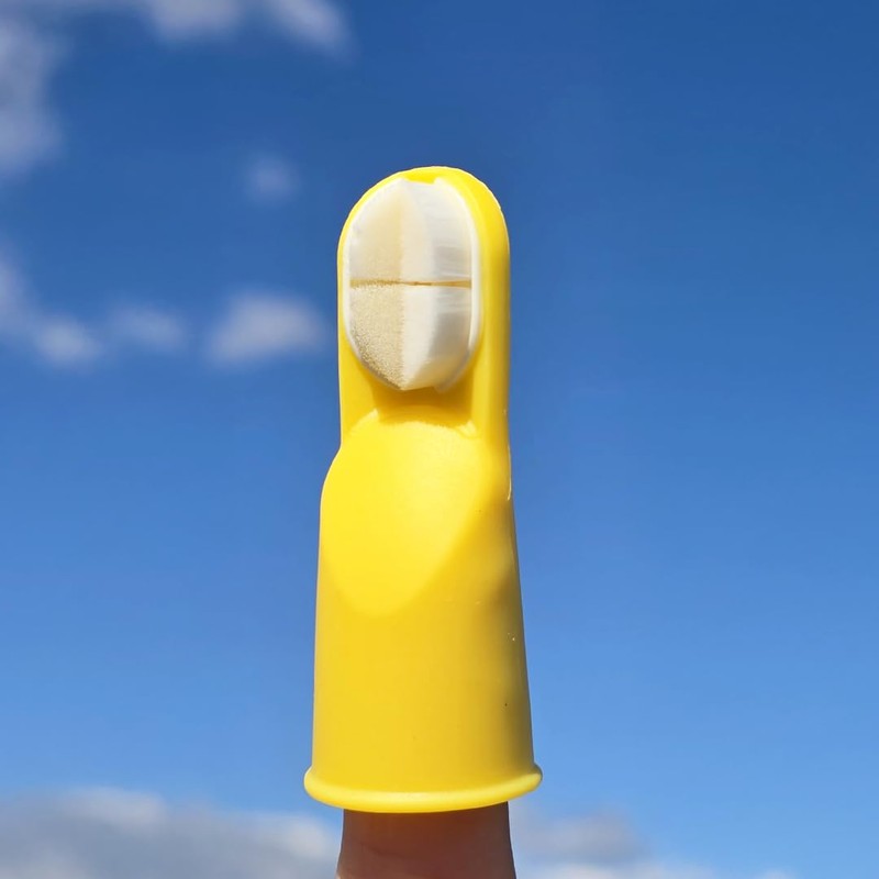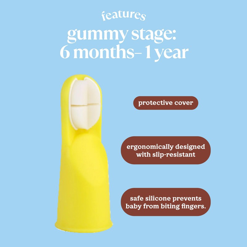 Baby Finger Toothbrush with Storage Case for 6-12 Months, Silicone Finger Sleeve for Gentle Teeth and Gums Care, 2-Sided Soft Bristle for Baby's First Teeth, Yellow (1 Pc)