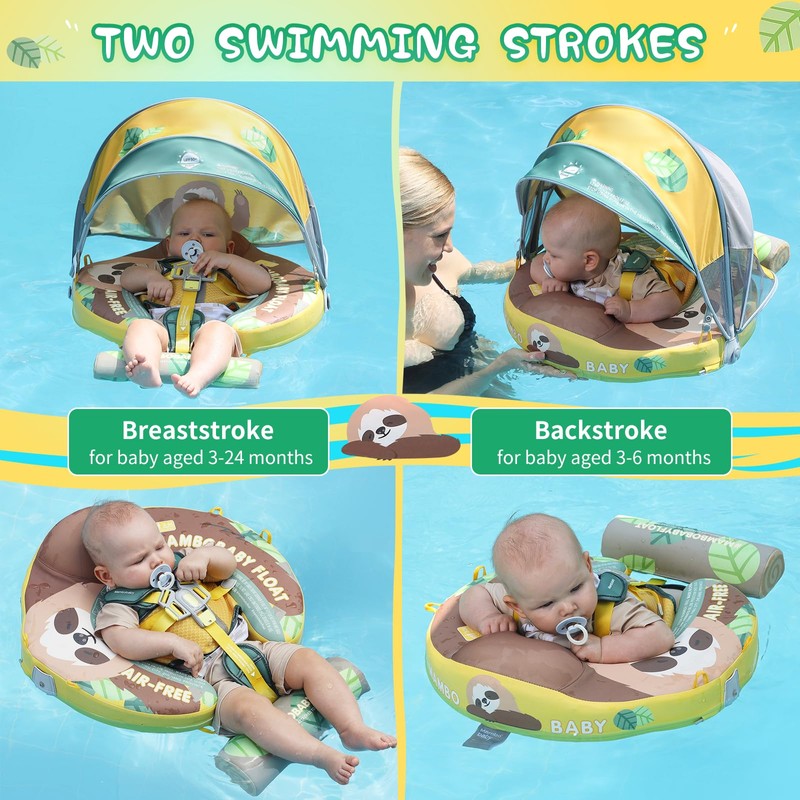 Baby Floats for Pool with Canopy Removable Sun Protection Canopy Mambobaby Float Non Inflatable Upgrade Add Tail Avoid Flip Waterproof Skin-Friendly Infant Swim Float 3-24 Months (Sloth)