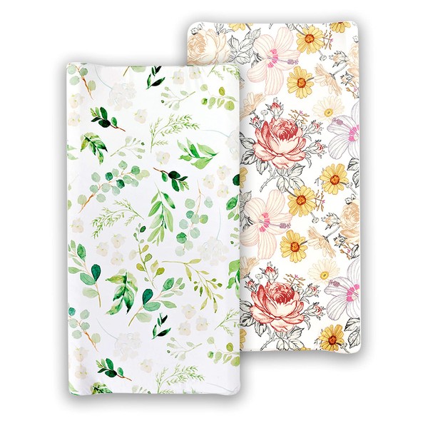 Baby Floral Nappy Changing Mat Cradle Mattress Changing Mats, Infant Stretchy Fabric Changing Table Cover Changing Mat Baby Nursery Nappy Changing Mat 32 x 16 Inches (Green + Flowers)