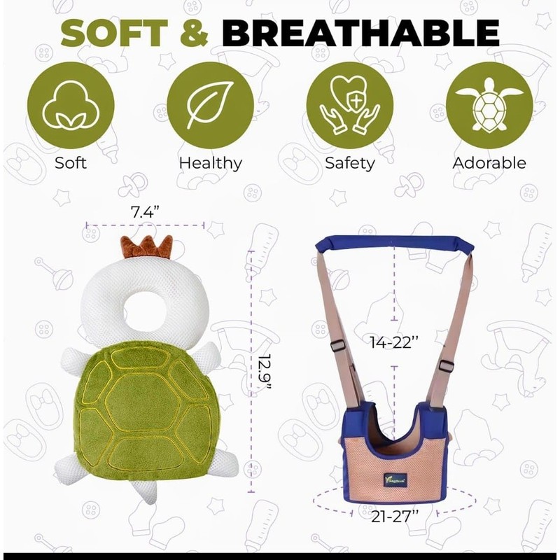 • PERFECT FOR TRAVEL: Whether you're going for a walk around the block or taking a family vacation, our baby walker head protector backpack is a must-have for any parent. As well as our toddler walking harness, the 4 cabinet baby proofing , the 4 baby corner and edge protectors, for girls and boys 6-12 months old.