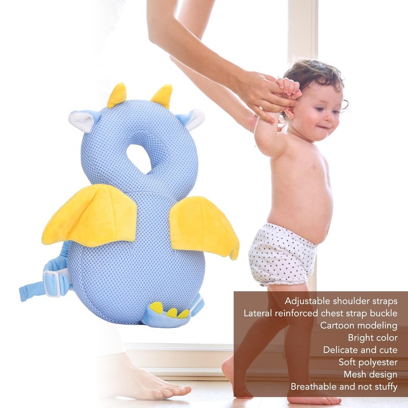 Baby Head Protector Backpack, Toddler Head Protection Pad, Adjustable Cartoon Baby Head Protector Backpack Wear with Strap Safety Products for Walking Crawling (Flying Dragon)