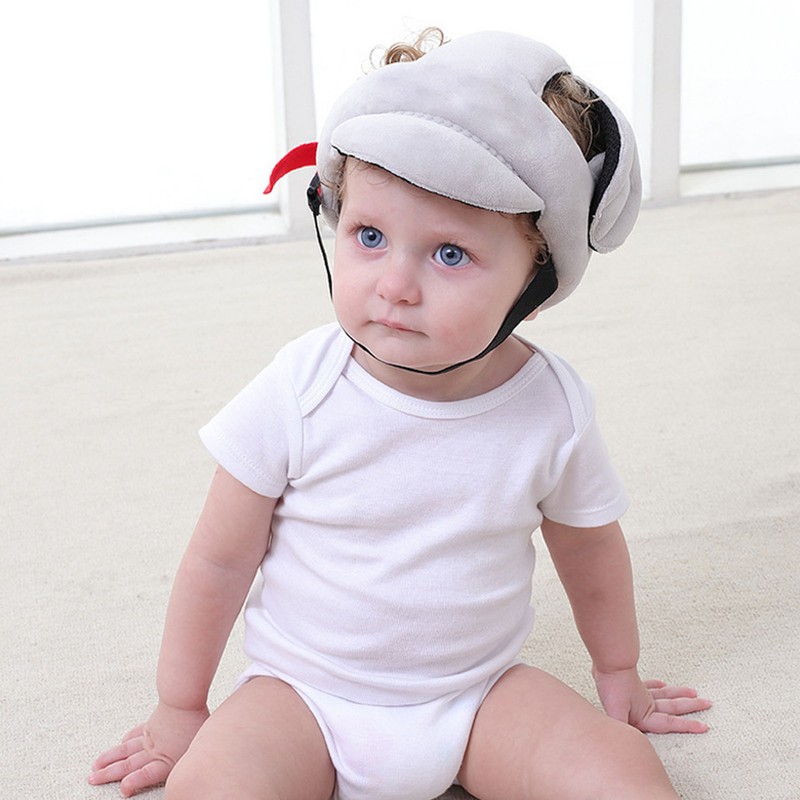 Baby Helmet Shock Absorbing Lightweight Breathable Adjustable Soft Infant Safety Helmet Light Gray