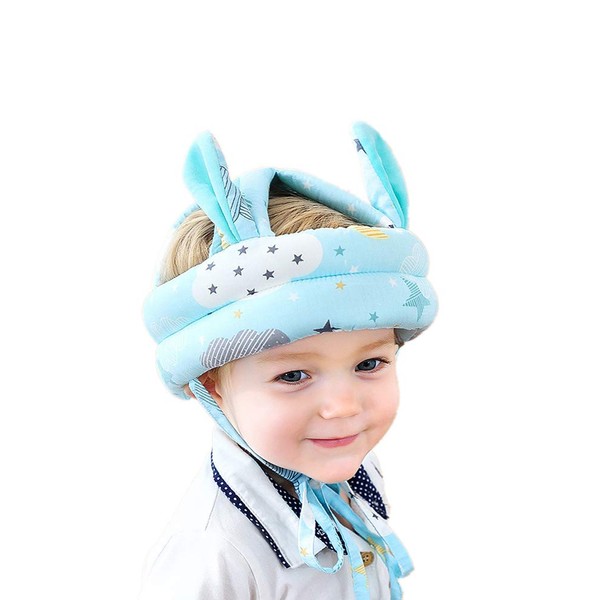Baby Infant Toddler Helmet No Bumps Safety Head Cushion Bumper Bonnet, Adjustable Protective Cap Child Safety Headguard Hat for Running Walking Crawling (Blue Clouds)