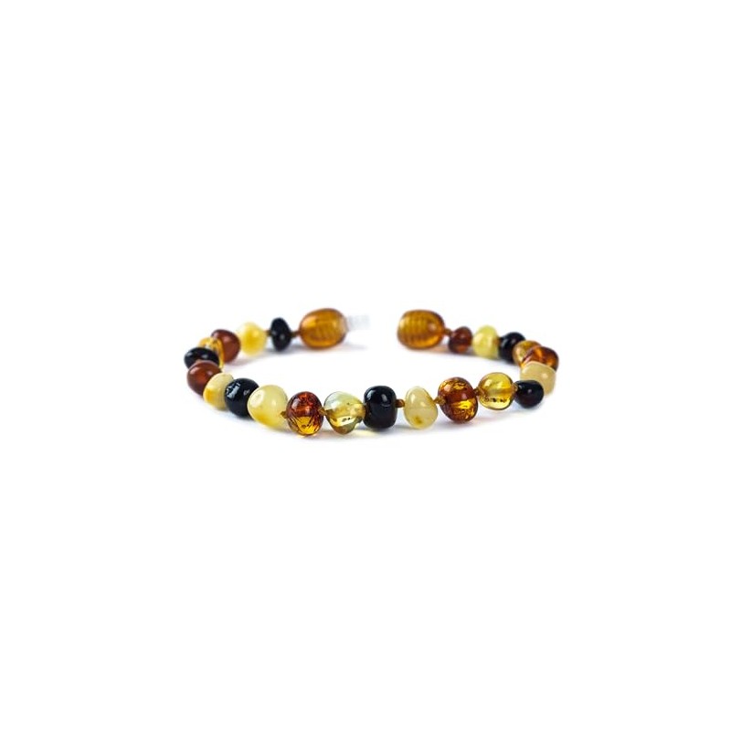 Baby J's - Multi-Coloured Bracelet/Anklet - Premium Amber Bracelet - Handcrafted with 100% Baltic Amber - Fitted with a Safety Screw Clasp - Knotted to Prevent Scattering - 14cm