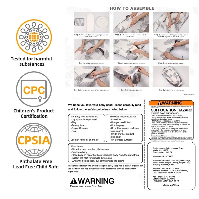 [1] The infant lounger is compressed when received, please follow the instructions to install it.