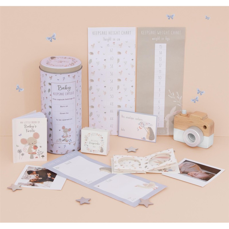 - The keepsake capsule includes a hand and footprint record, a growth and weight chart, and a book of baby’s firsts, providing a comprehensive way to capture and preserve precious moments.
