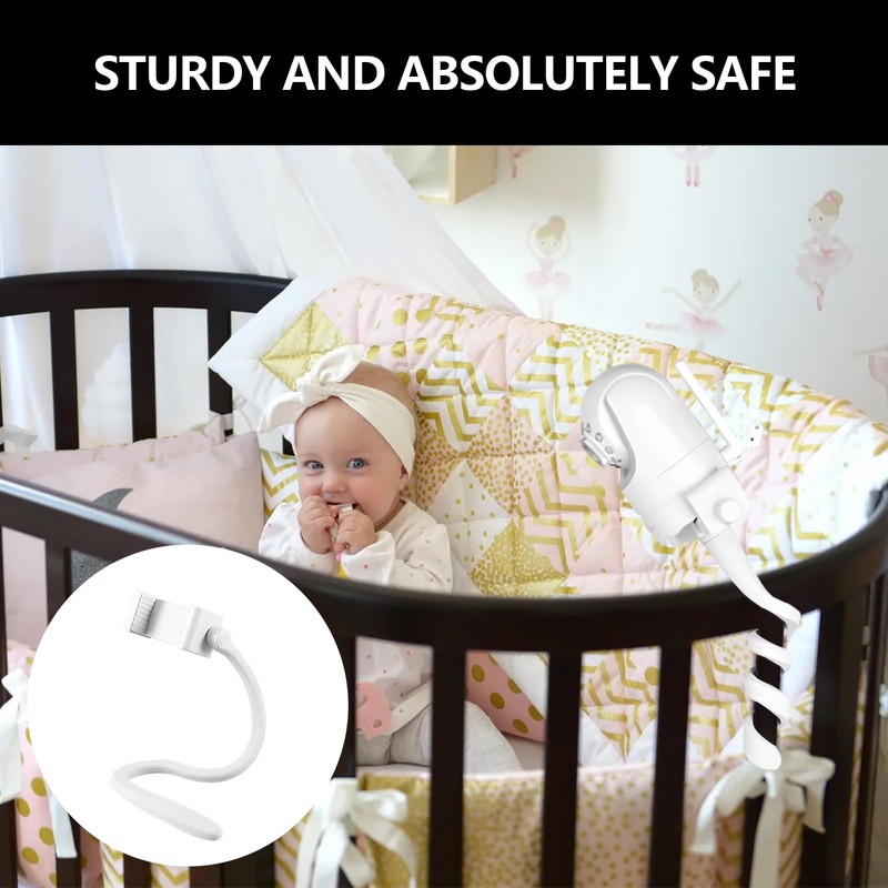 Perfect Positioning & Adjustable Flexibility: The baby monitor stand can get the ideal view of your baby! The flexible gooseneck arm allows easy rotation and tilting, so you can adjust the camera angle effortlessly. Whether attached to a crib, shelf, or bed frame.