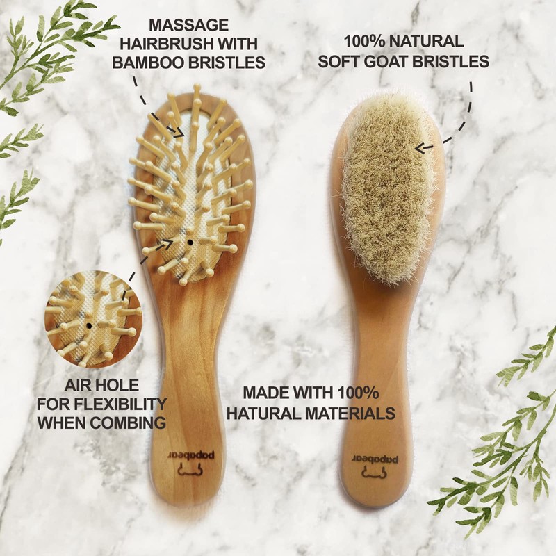 - 【Baby Hair Brush and Comb】: We use natural goat soft bristle brush with bamboo, beech wood and pear wood for all our hairbrushes and combs.