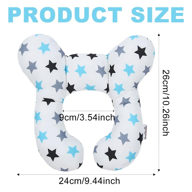 Baby Neck Support Pillow,Soft U Shaped Cotton Head Protector for Newborns,Stroller Travel Pillow with Cute Patterns for Car Seat Journey Sleeping,Protect the Healthy Growth of Cervical Spine (Star)