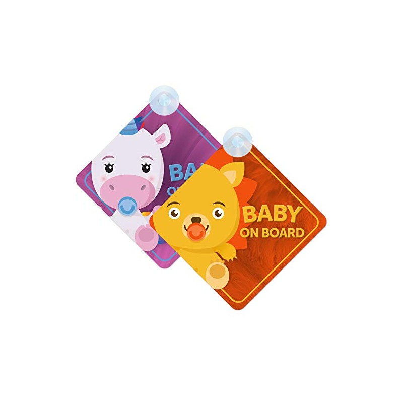 Baby on Board Sign Unicorn/Lion Twin Pack for Car, 2pcs Kids Safety Warning with Suction Cups
