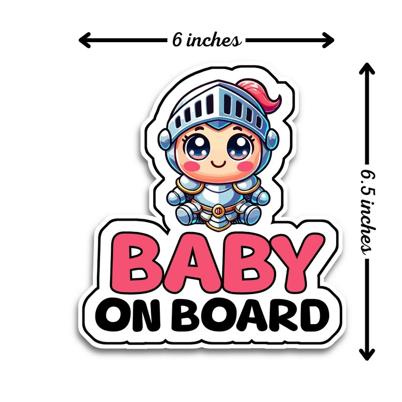 Baby on Board Signs for Car, 6.5 x 6 Baby Knight on Board, Waterproof and UV-Resistant Baby on Board Sticker, Durable Baby Sign for Safety Awareness, Easy to Apply for Window or Bumper