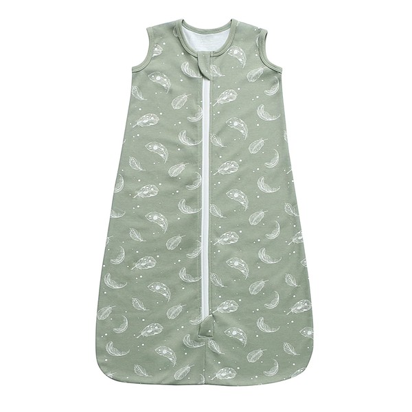 Baby Organic Cotton Wearable Blanket 0.5 Tog Lightweight Sleeping Sack with 2-Way Zipper, Boys Girls Swaddle Blanket Infant Sleeping Bag(Feather Green, 3-12 Months)