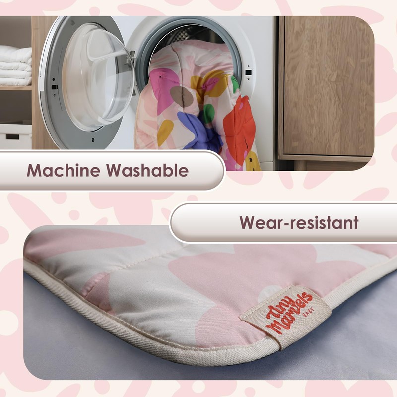 - Portable & Machine Washable - Lightweight and compact, the foldable mat is easily portable for playtime anywhere - just roll,clip,and go.Made from soft, durable materials, just toss it in the machine for a quick, hassle-free clean.A perfect, practical solution for busy parents