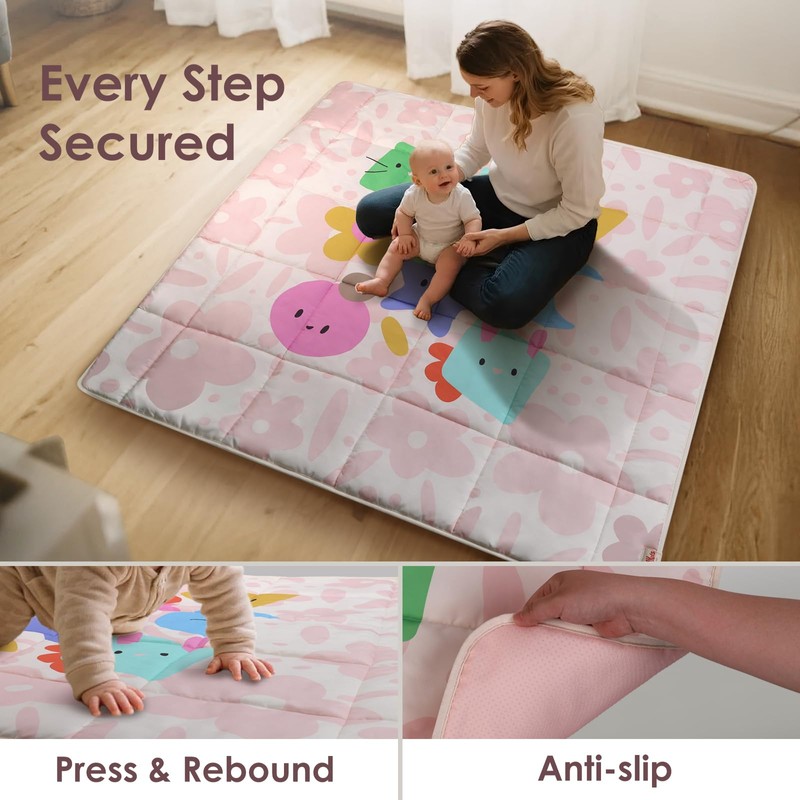 - Balance of Thickness & Softness - Our baby play mats for floor is 30% with thicher premium soft padding foam and fabric top layer to ensure a soft and cushioned surface, providing a comfortable place for your little one to relax, play and work on their developing skills