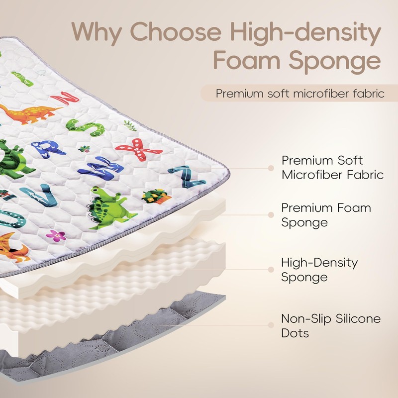 - 【Premium Soft Thicker Foam】Our premium foam play mat with thicker, soft padding, high-quality sponge that provides cushioning for your baby's falls. The non-slip back ensures stability and safety during playtime.