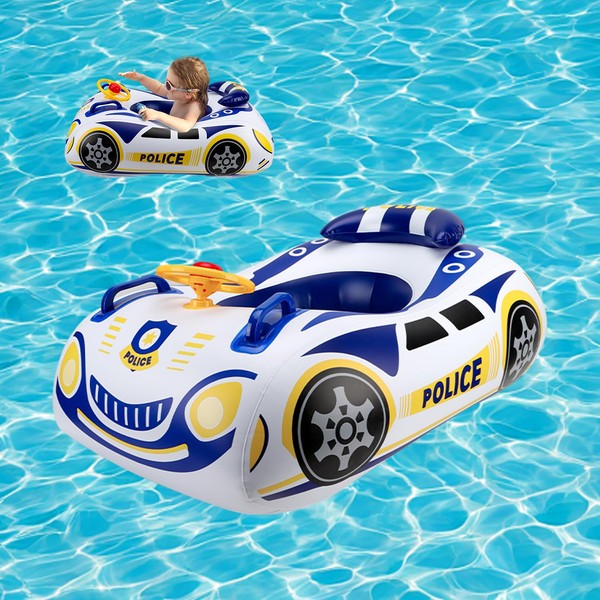 Baby Pool Float Police Car Design Toddler Pool Float Heavy Duty Toddler Floaties Inflatable Boat Floaties for Toddlers 1-2 Kids Pool Floats for Toddlers 1-3 Baby Swim Float for Kids Age1-5 Boys Girls