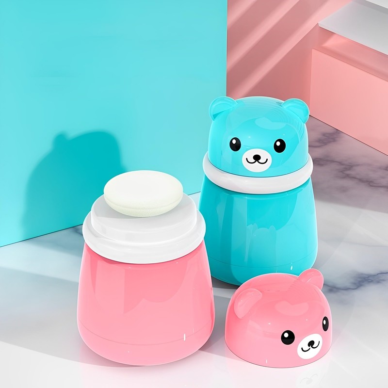Baby Powder Puff and Container 2pcs, Cartoon Bear Body Talcum Powder Puff Bottle Empty Box, Baby Loose Powder Container with Puff