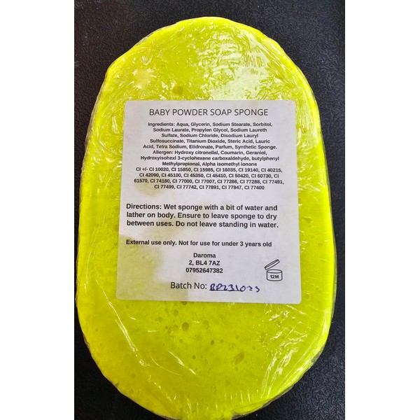 Baby Powder Scented Bath Soap Sponge, Yellow, External Use Only, Not for Children Under 3 Years