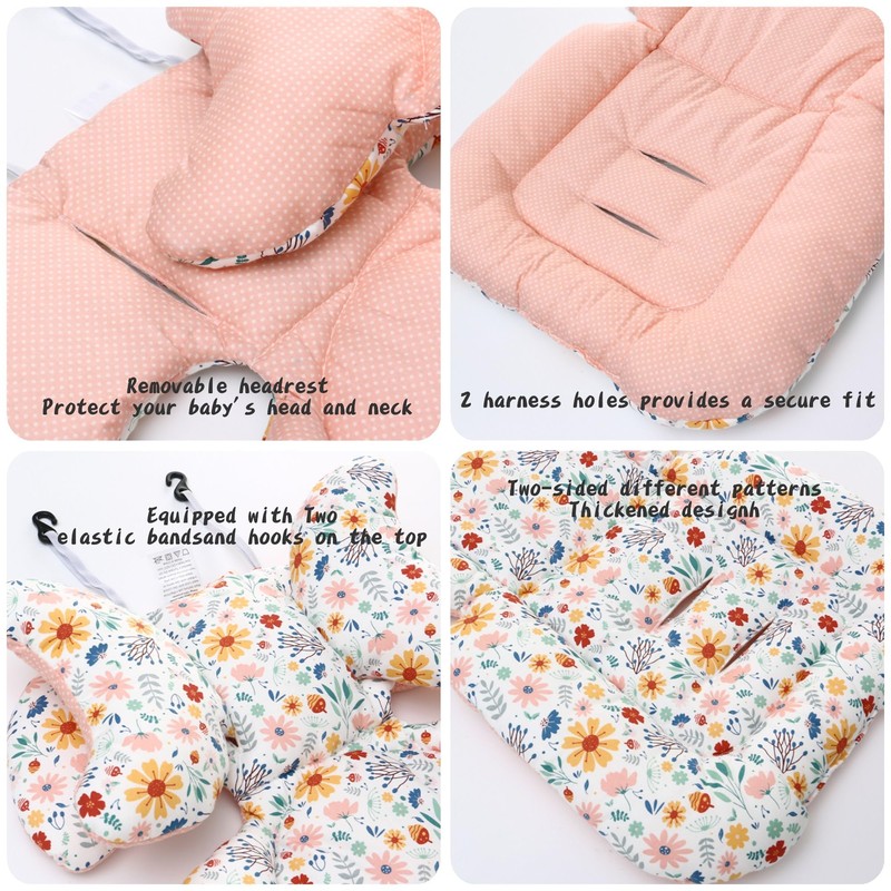 - Double-sided Use: The double-sided use feature allows for more options and versatility when using the pram insert pad.Two-sided different patterns. Thickened design, comfortable and shock-absorbing.
