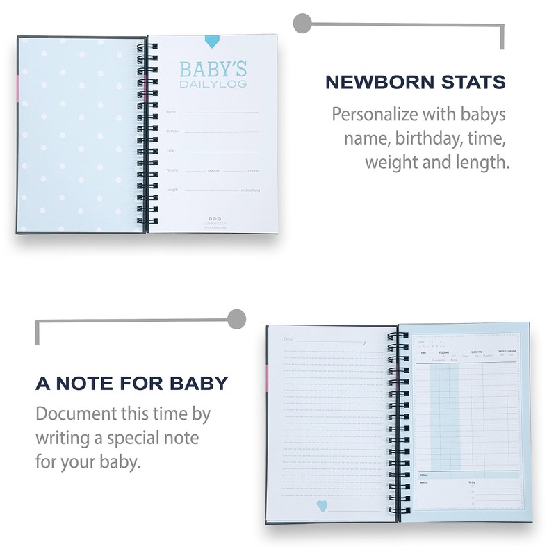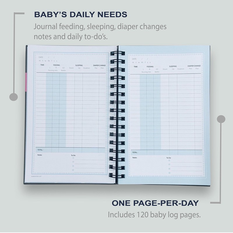 - Daily Log Pages (120 pages)- record your baby's feedings, sleeping schedules and diaper changes. A perfect visual of your baby's day with a simple one page per day format. Great tool to communicate baby's needs with caregivers.