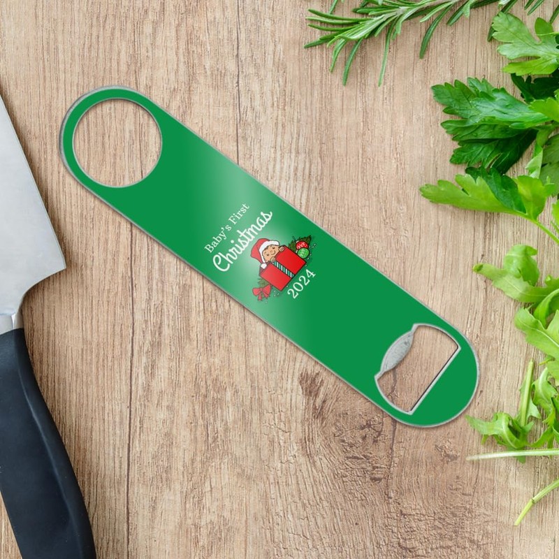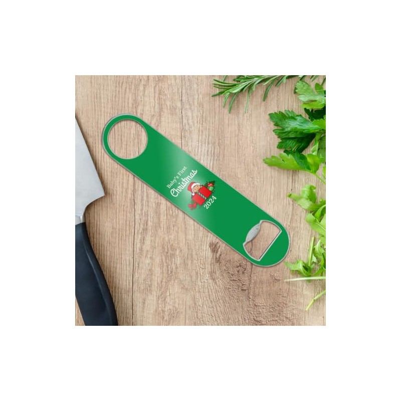Baby's First Christmas 2024 Stainless Steel Vinyl Covered Flat Bartender Speed Bar Bottle Opener