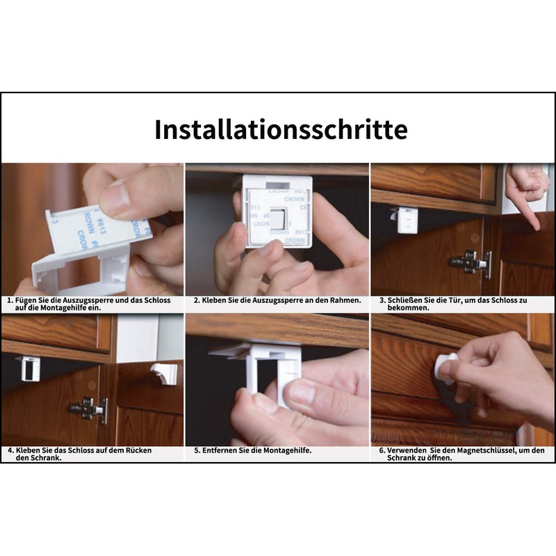 - Easy installation - The installation of the child safety cabinet is child's play thanks to the specially developed installation aid. No screws or tools required. Guaranteed simplified sticking!
