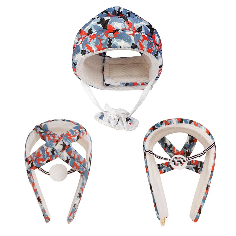 -Soft and breathable honeycomb mesh cloth,inner layer filled high elastic sponge,relief the impact force due to hit. -Soft and adjustable chin pads to protect your baby's chin injury.-Provide 360 degree all over protect baby head safety.-The top of the head opening design,breatheble and moisture-absorbent,keep baby head cool dry.-The bumper hat make your baby more safety when walking,crawling and playing in ondoor or outdoor.