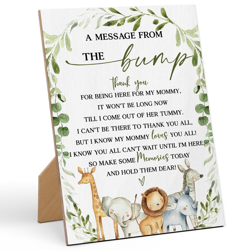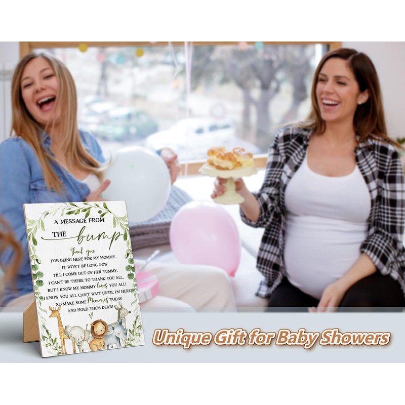 Baby Shower Games a Message from The Bump Baby Shower Game Sign-8×11 Inches, Jungle Safari Animal Wooden Game Sign, Gender Neutral Tabletop Decor for Gender Reveal Party, Baby Shower Decoration-LA21