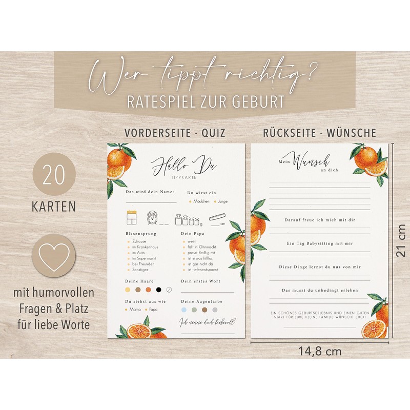 Baby Shower Tiping Cards - Baby Shower Guessing Game During Pregnancy with Fun Questions to Fill In - Suitable for Girls and Boys (Citrus, 20)