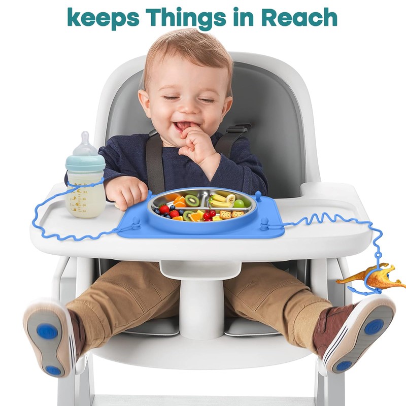 - Keep Toys & Utensils Off the Floor: Say goodbye to constant picking up! Our mat includes 4 silicone straps that secure spoons, cups, and favorite toys, ensuring nothing gets dropped or thrown. Perfect for active eaters, this smart feature makes it more than just baby plates with suction—it’s a full mealtime solution for on-the-go parents